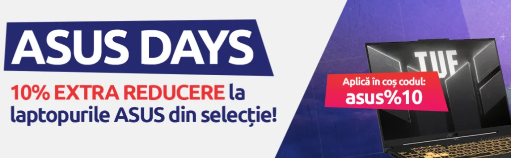- Reducere -10% la produse ASUS – Codul „asus%10„