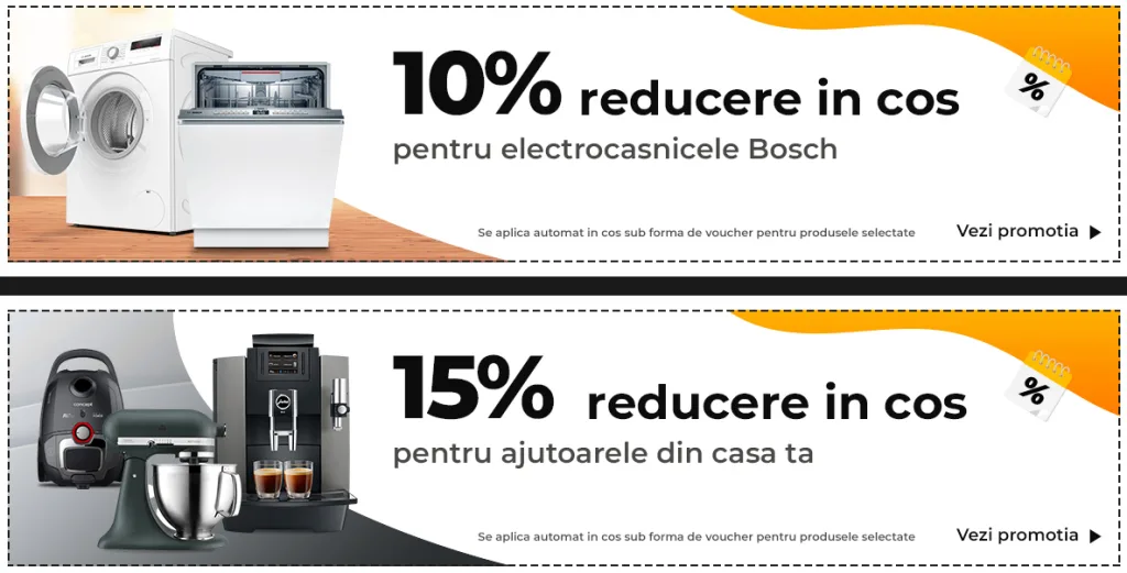 - Reducere -15% la electrocasnice mici – Cod „GX5LUYYB„