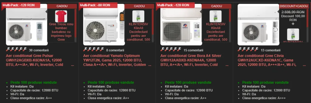 - Reducere -10% la aparate de aer conditionat – Cod „4G9E135T„