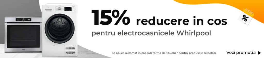 - Reducere -15% la electrocasnice Whirlpool – Cod „C14MBX4T„